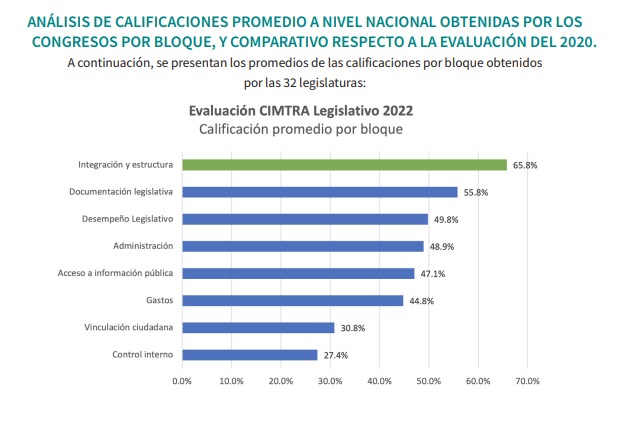 El promedio nacional de cumplimiento de la ley es de 46.5%, es decir, son “nuevas legislaturas, mismas opacidades”, como se titula el documento “Evaluación Legislativa 2022 a los 32 congresos locales”.