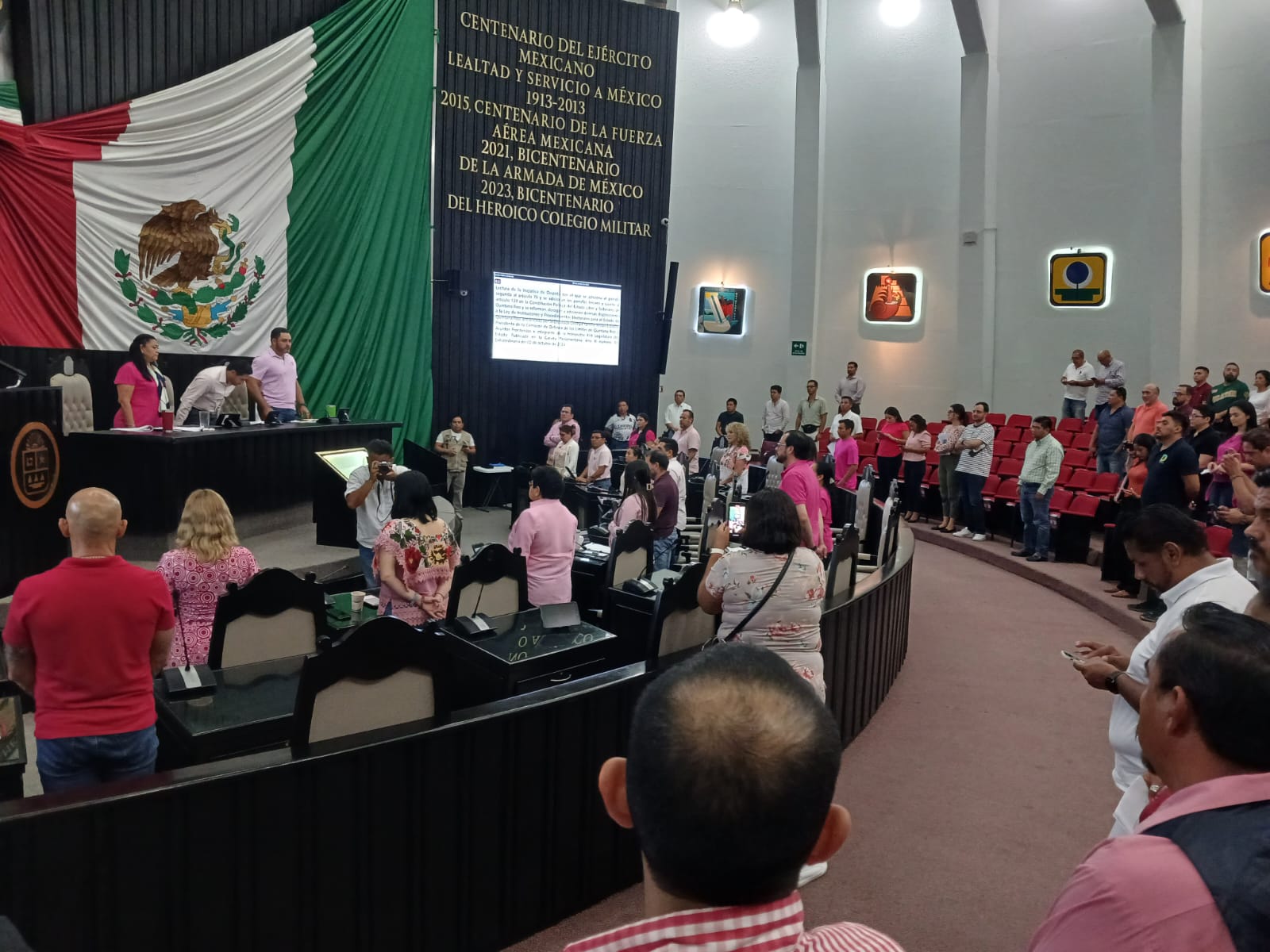 Además, había el objetivo didáctico para que niñas y niños vieran cómo es una sesión en la Cámara, pero se encontraron con las curules vacías; niñas, niños, adolescentes, vestidos con ropa regional para llamar la atención de los legisladores, tuvieron que ir a tocar su sonajita a otra parte, porque no pudieron ser escuchados por diputadas y diputados que sin avisar no cumplieron con su horario establecido, al preferir hacer historia tomándose la foto con camiseta rosa.