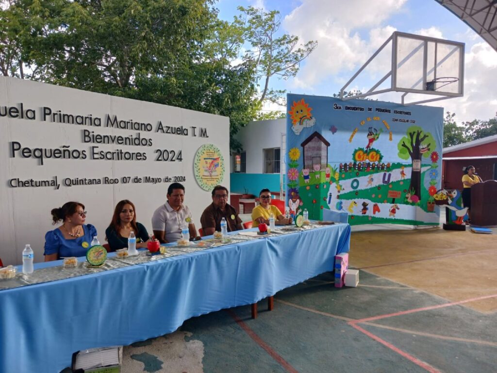 La escuela primaria “Mariano Azuela” de Chetumal fue sede de la fase final del Tercer Encuentro de Pequeños Escritores, iniciativa de la Zona Escolar 02 integrada por 14 escuelas de primaria, públicas y privadas, como parte del programa extracurricular que busca consolidar conocimientos impartidos en las aulas y fortalecer hábitos de lectura y escritura, tan fundamentales para una formación sólida desde la infancia, según expresó la directora de la escuela anfitriona, Flor Elaine Canul Tun.