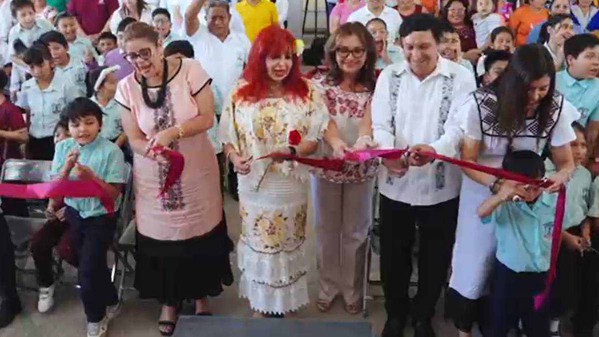 Como parte del acto protocolario, Sansores San Román realizó el corte del listón inaugural acompañada de su hermana Laura, presidenta del Sistema DIF Estatal; de Liz Hernández Romero, secretaria de Gobierno, y de Víctor Manuel Sarmiento Maldonado, secretario de Educación, además de Alma Beatriz Euan López, directora de la escuela, y Mariela Morales Díaz, presidenta de la Asociación de Madres y Padres de Familia.
