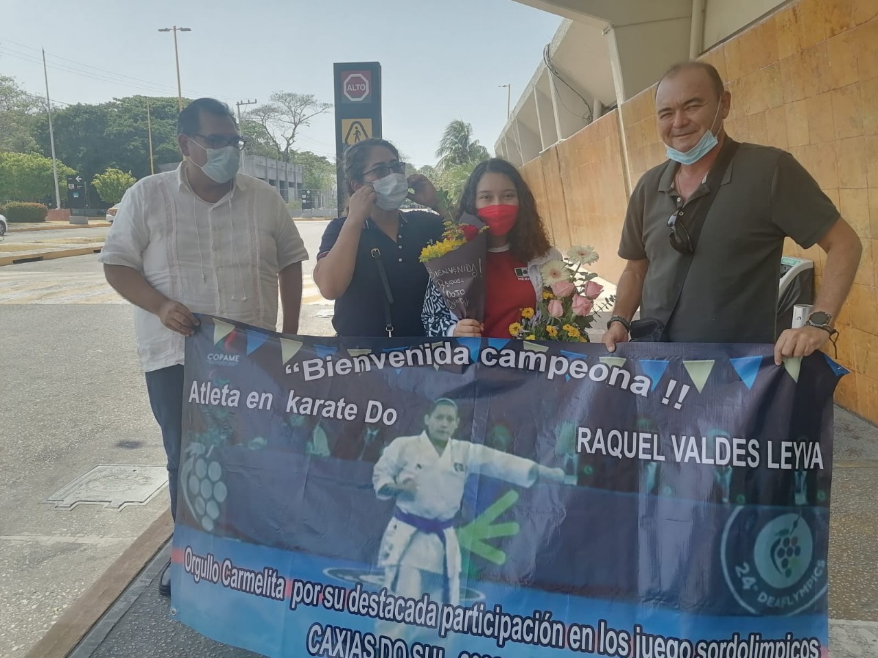 Después de su participación en los Juegos Sordolímpicos de Brasil 2022, la destacada atleta campechana, Raquel Valdés Leyva, llegó este día vía aérea al municipio de Carmen, de donde es oriunda, hasta donde llegaron sus padres, acompañados del encargado de despacho de la Coordinación Institucional del INDECAM, José Angel Aguilar Baceliz, en representación del director general, Francisco Menéndez Botanez, para darle la bienvenida a casa.