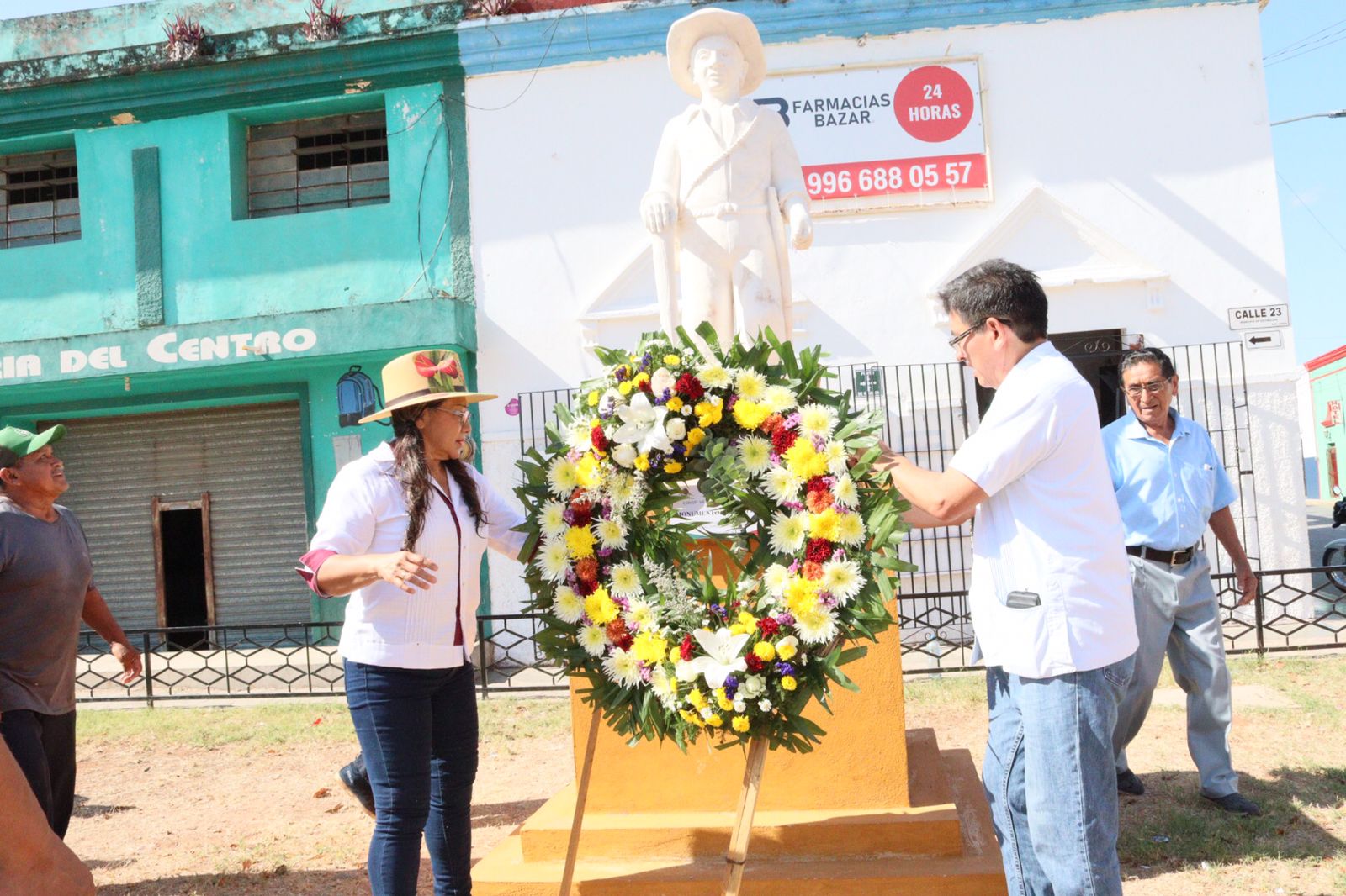 El presidente municipal Roberto Herrera Maas, acompañado por su esposa, la Presidenta del Sistema DIF Municipal, Profra. Ruth Noemí Dzib KU, colocaron un arreglo floral en memoria y homenaje a las campesinas y campesinos que trabajaron por un mundo mejor y la Soberanía Alimentaria, en la defensa y cuidado de la naturaleza, de las semillas, de la tierra y del agua.