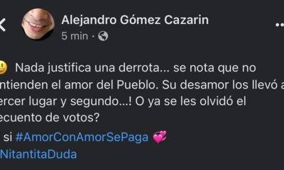 «Nada justifica una derrota, se nota que no entienden el amor del pueblo. Su desamor los llevo al tercer y segundo lugar», fue la respuesta del...
