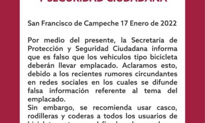 Por medio del presente comunicado, la Secretaría de Protección y Seguridad Ciudadana (SPSC) informa que es falso que los vehículos tipo bicicleta deberán llevar emplacado. Aclaramos...