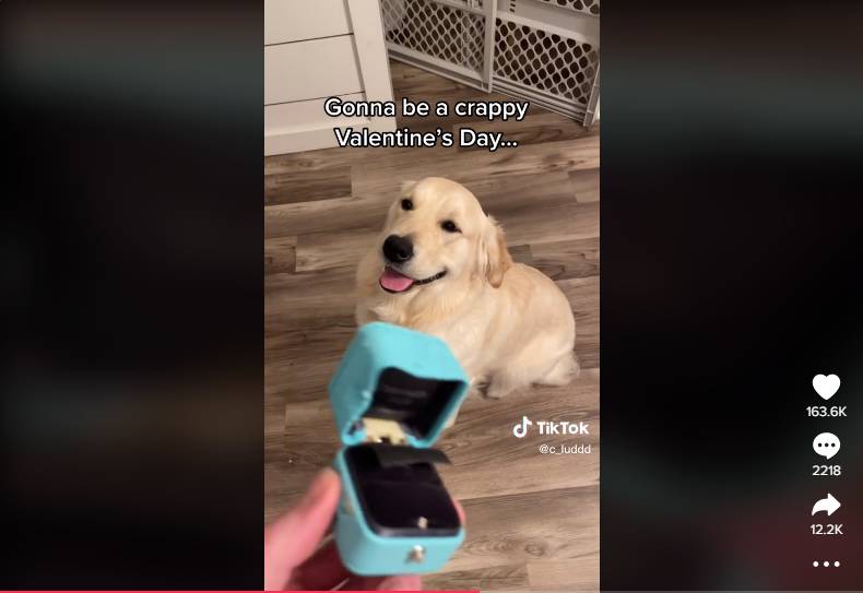 Un perrito de la raza golden retriever se hizo viral en la red social TikTok, después de que su dueño posteara un video con el triste desenlace que tendrá su Día de San Valentín, el usuario @c_luddd subió un post a la plataforma de video con el título “Gonna be a crappy Valentine’s Day” o “va a ser un Día de San Valentín de mierd*”.