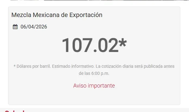 En su reporte económico semanal, el CEFP mencionó que el jueves, el precio promedio ponderado de la mezcla mexicana de exportación se situó en 105.72 dólares por barril, su nivel más alto desde el 30 de junio de 2022, lo que implicó un incremento de 5.71 dólares (5.7 por ciento) con respecto a la cotización del 27 de marzo”.