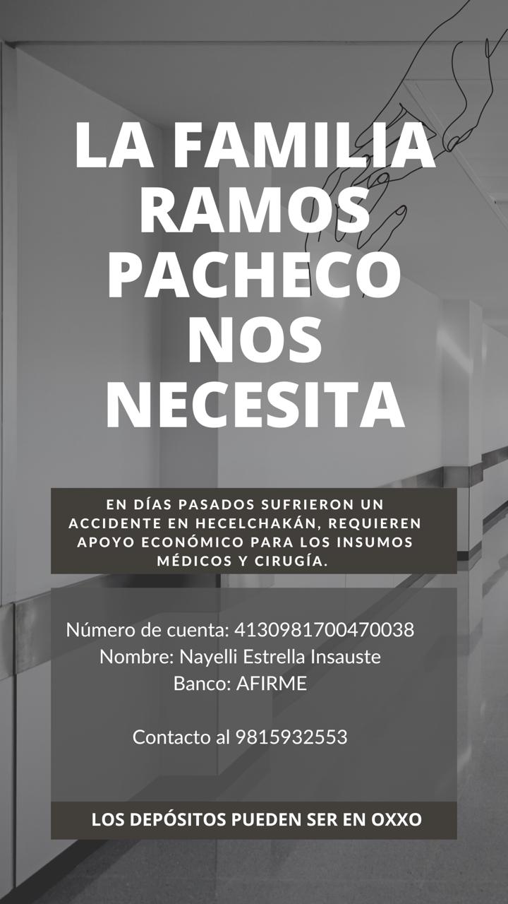 La familia Ramos Pacheco necesita del apoyo ciudadano, en días pasados sufrieron un accidente en Hecelchakán, requieren apoyo económico para los insumos y operaciones médicas.