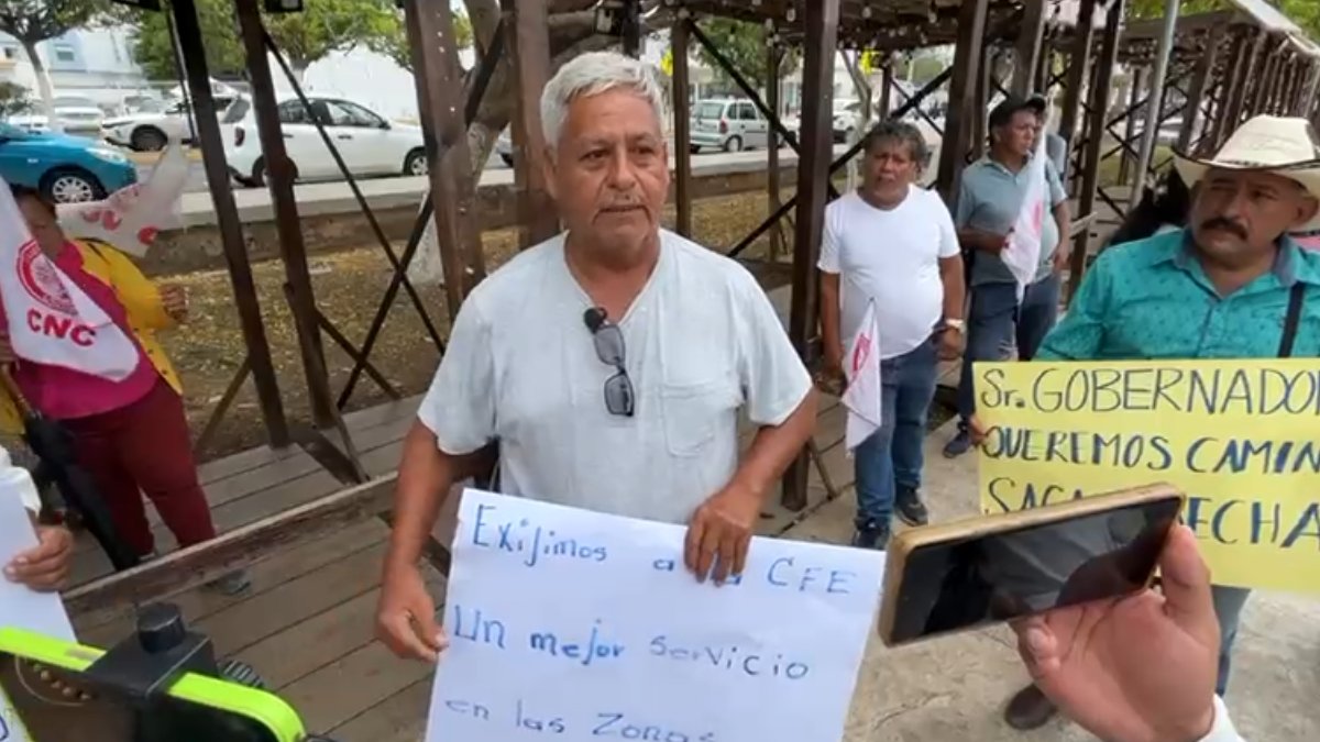 Una vez más, agricultores se manifestaron en Palacio de Gobierno, por los constantes apagones de energía eléctrica, por lo que pidieron a la gobernadora Layda Sansores apoyarlos para darle solución a este tema.