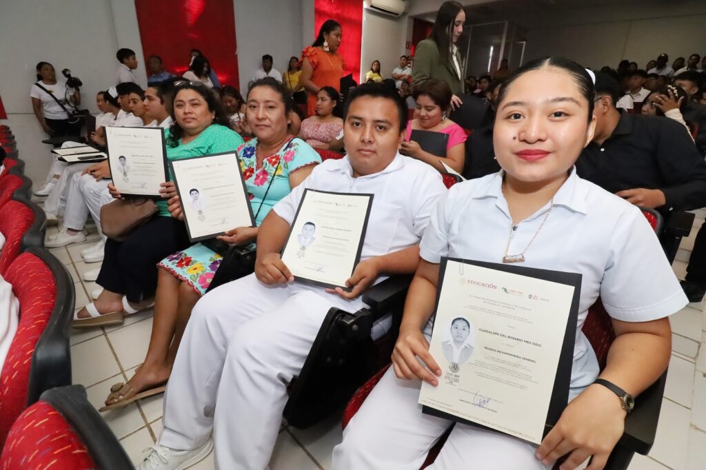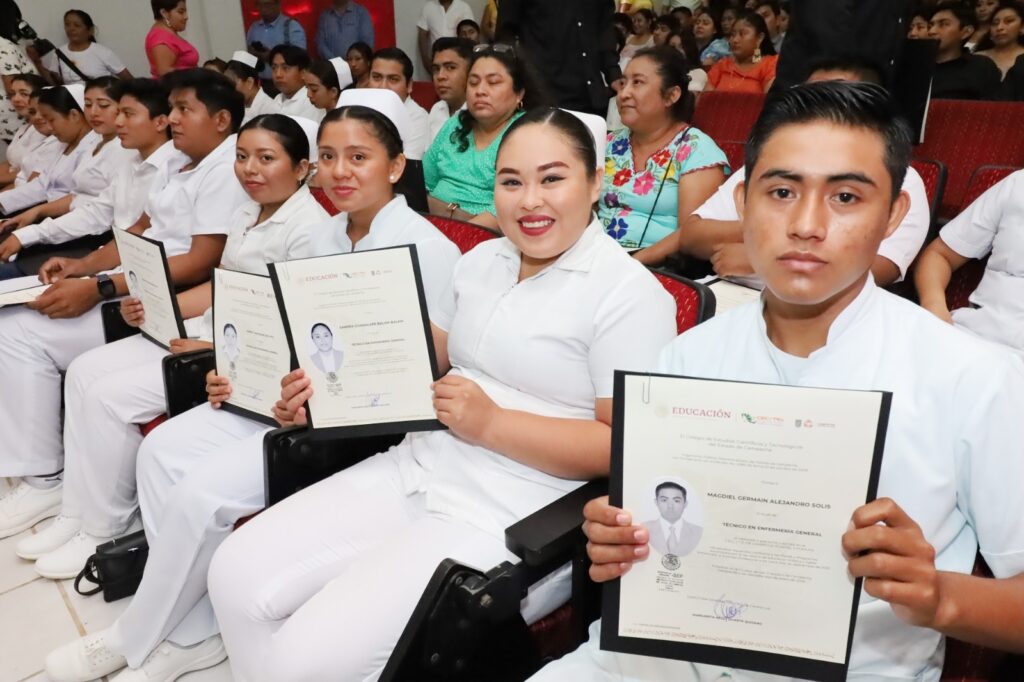 En lo que va del 2024, el Colegio Científico y Tecnológico del Estado de Campeche (CECyTEC), ha entregado 88 títulos profesionales a egresados del plantel Pomuch por haber concluido exitosamente sus estudios como técnico profesional en las especialidades de Procesos de Gestión Administrativa, Enfermería, Construcción y Programación.