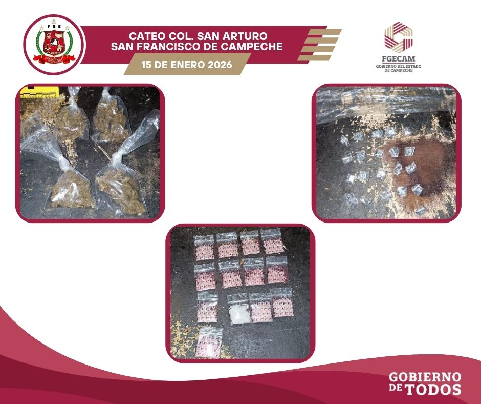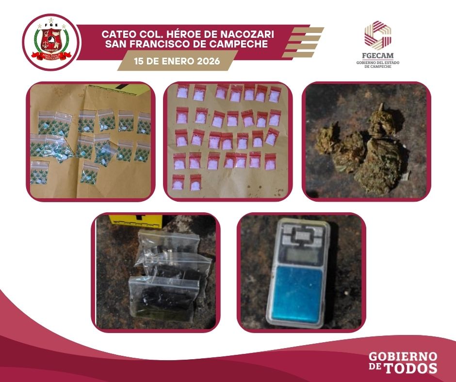 La Fiscalía General del Estado de Campeche (FGECAM) informa que, como resultado de trabajos de investigación y análisis ministerial, este 14 de enero de 2026 se llevaron a cabo dos cateos en distintas colonias de la ciudad de San Francisco de Campeche, dando tramite a las carpetas de investigación por delitos contra la salud en su modalidad de narcomenudeo.