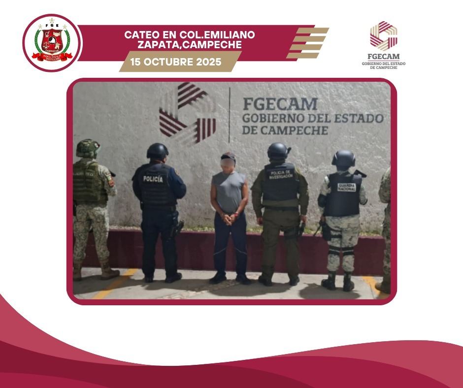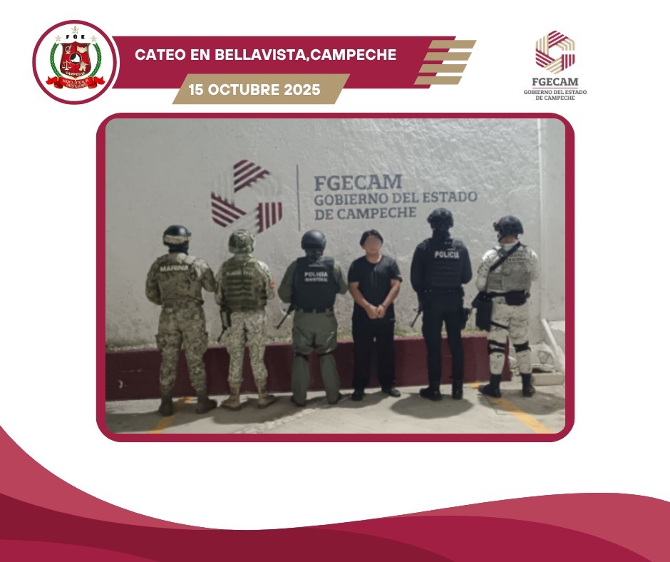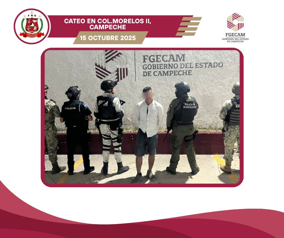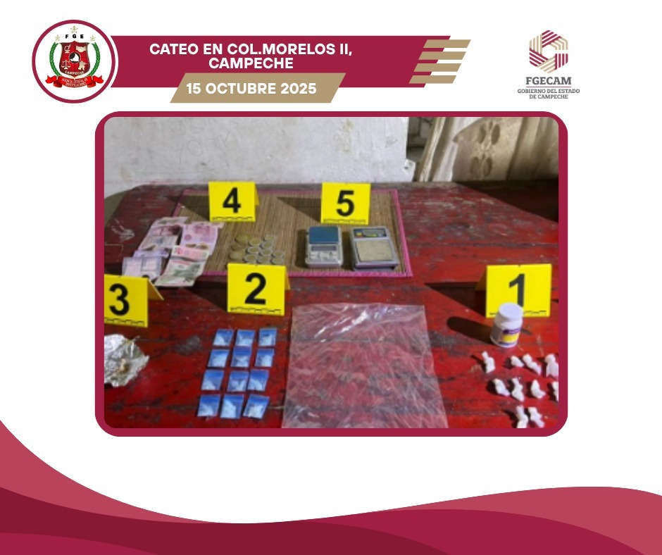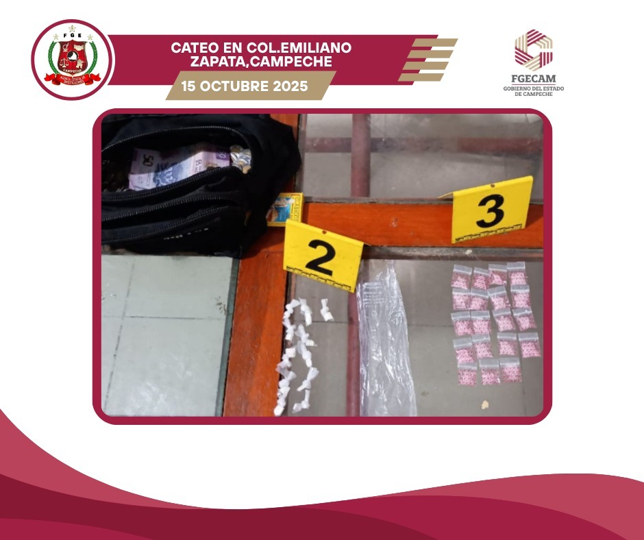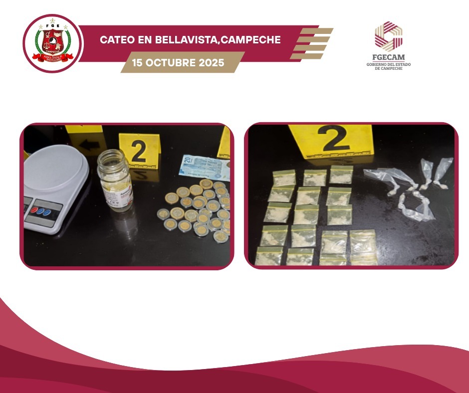 La Fiscalía General del Estado de Campeche (FGECAM) informa que, derivado de trabajos de investigación realizados por la Agencia Estatal de Investigaciones, la tarde-noche de ayer 14 de octubre de 2025 se ejecutaron tres cateos en distintos puntos de la ciudad de Campeche, relacionados con delitos contra la salud en su modalidad de narcomenudeo, en su variante de posesión con fines de comercio.