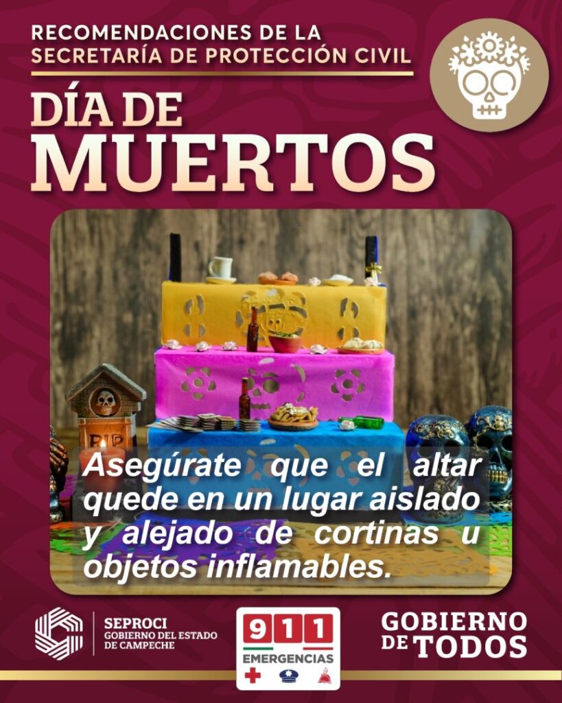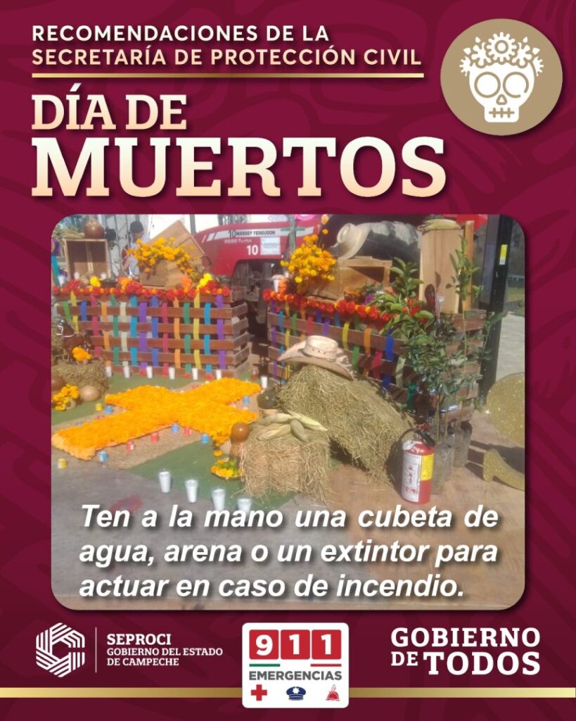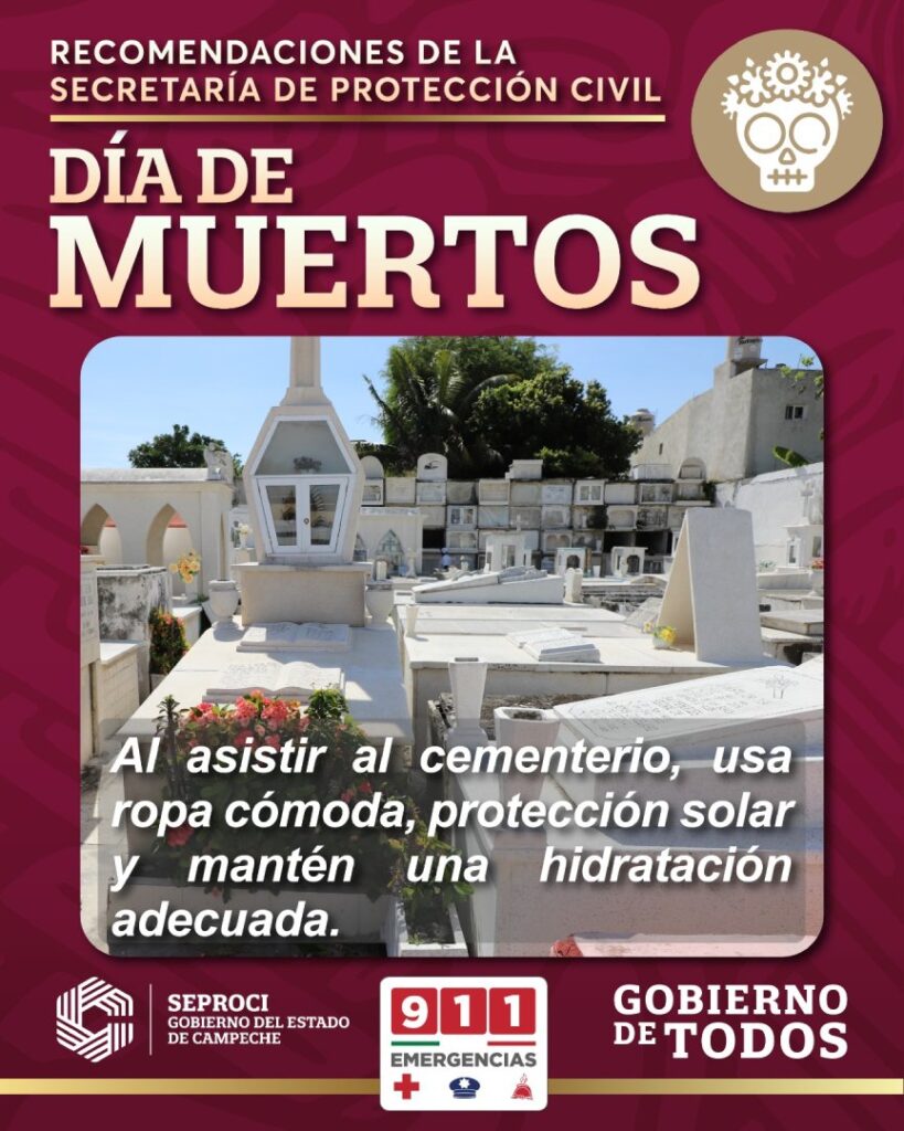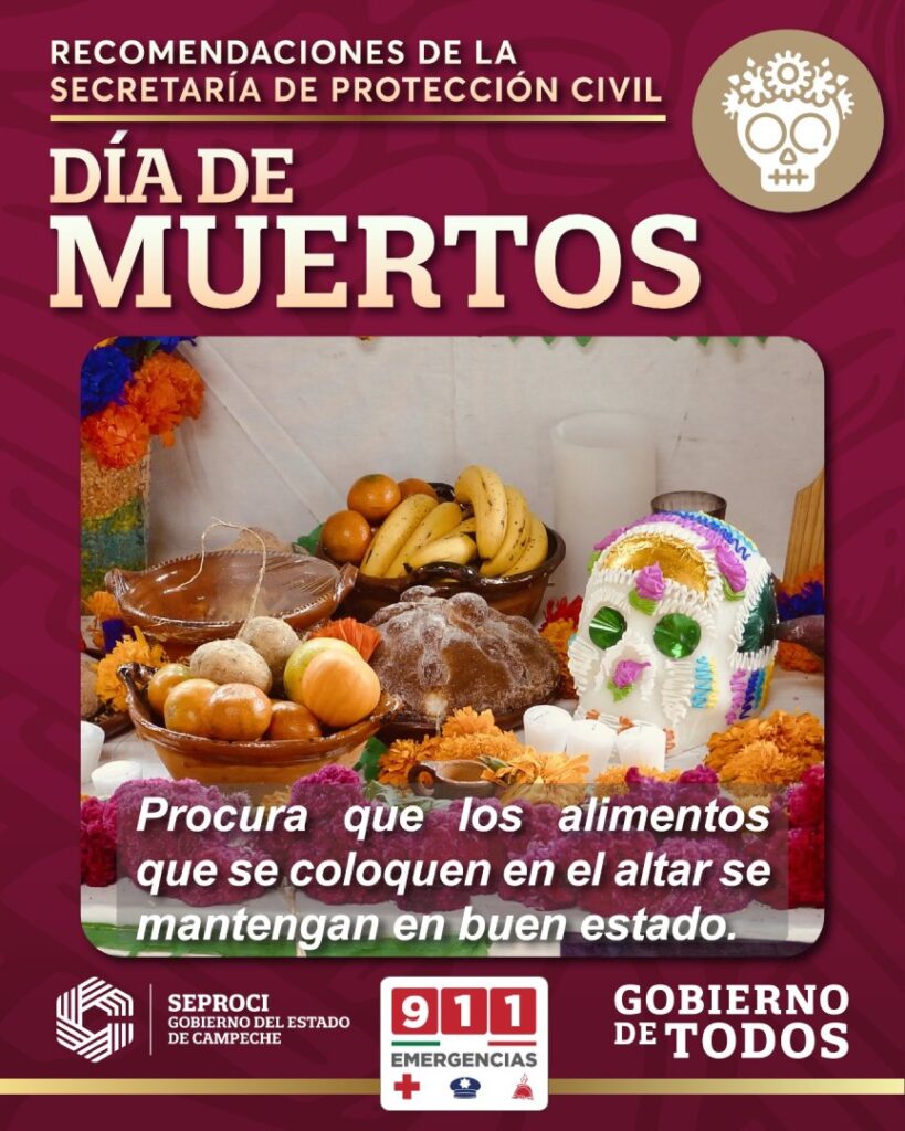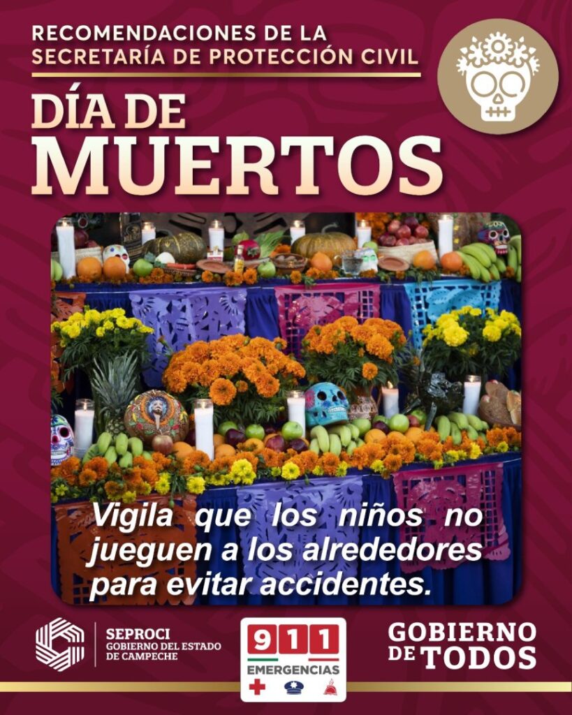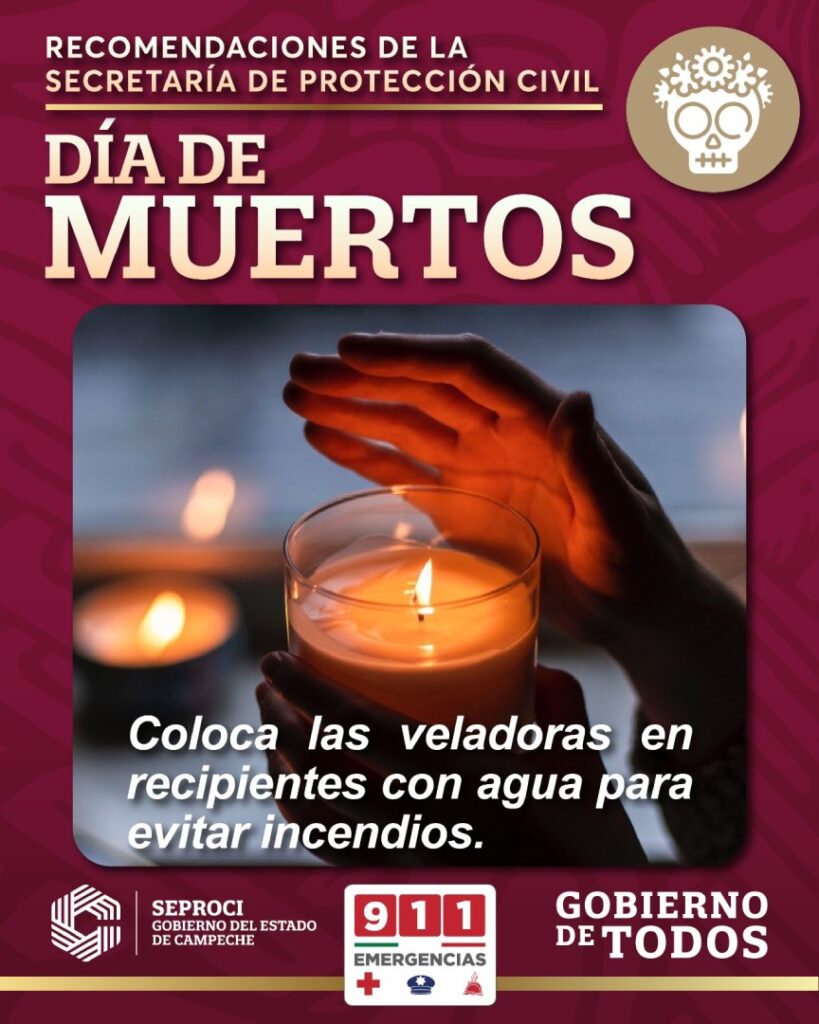 La Secretaría de Protección Civil invita a la población a tomar las medidas necesarias para evitar situaciones de riesgo durante las celebraciones por el Hanal Pixán o Día de Muertos.