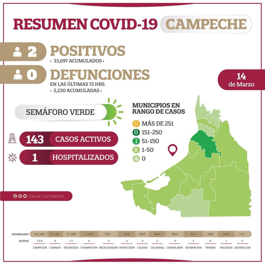 El estado se confirmó en RIESGO BAJO o COLOR VERDE del semáforo epidémico hasta el 20 de marzo del año en curso.
