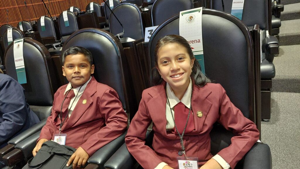 La alumna Eira Anyed Chuc Yáñez y el alumno Sixto Enrique Montero Álvarez, representando al distrito 1 y distrito 2 del Estado, forman parte de la delegación campechana que participa en el 12° Parlamento de las Niñas y Niños de México organizado por el Instituto Nacional Electoral (INE) y que se lleva a cabo en la Ciudad de México.