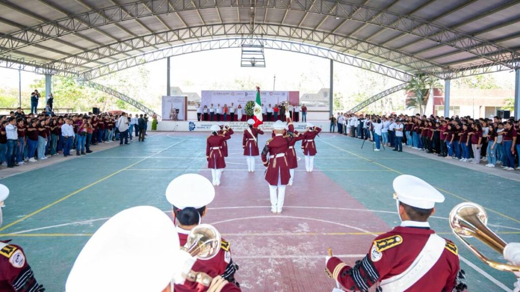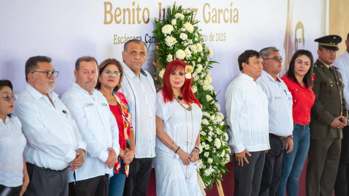 La gobernadora Layda Sansores San Román, y el director del Tecnológico Nacional de México, Ramón Jiménez López, presidieron hoy la ceremonia de conmemoración de 219 Aniversario del Natalicio de Don Benito Juárez García en un evento efectuado en el Polifórum “Casa de los Jaguares” del Instituto Tecnológico Superior de Escárcega, donde se destacó su legado de soberanía, justicia social y austeridad republicana.