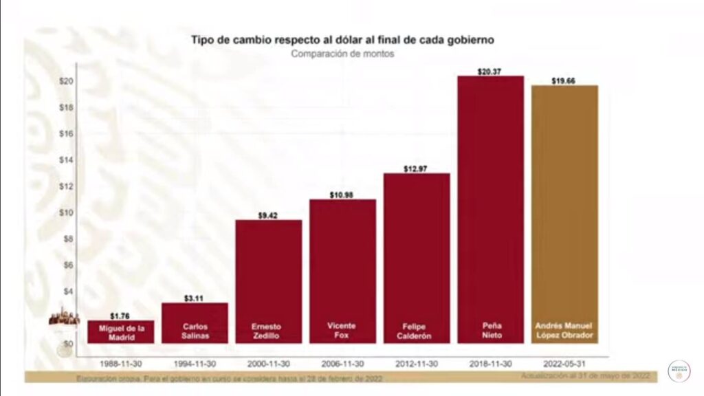 El presidente Andrés Manuel López Obrador celebró la apreciación del peso mexicano durante la actual administración y destacó que se ubica debajo de los 20 pesos por dólar estadounidense. Habló que se ha apreciado la moneda mexicana hasta en 3.5%.