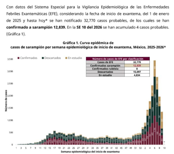 Se registraron los primeros tres casos de sarampión en Campeche.