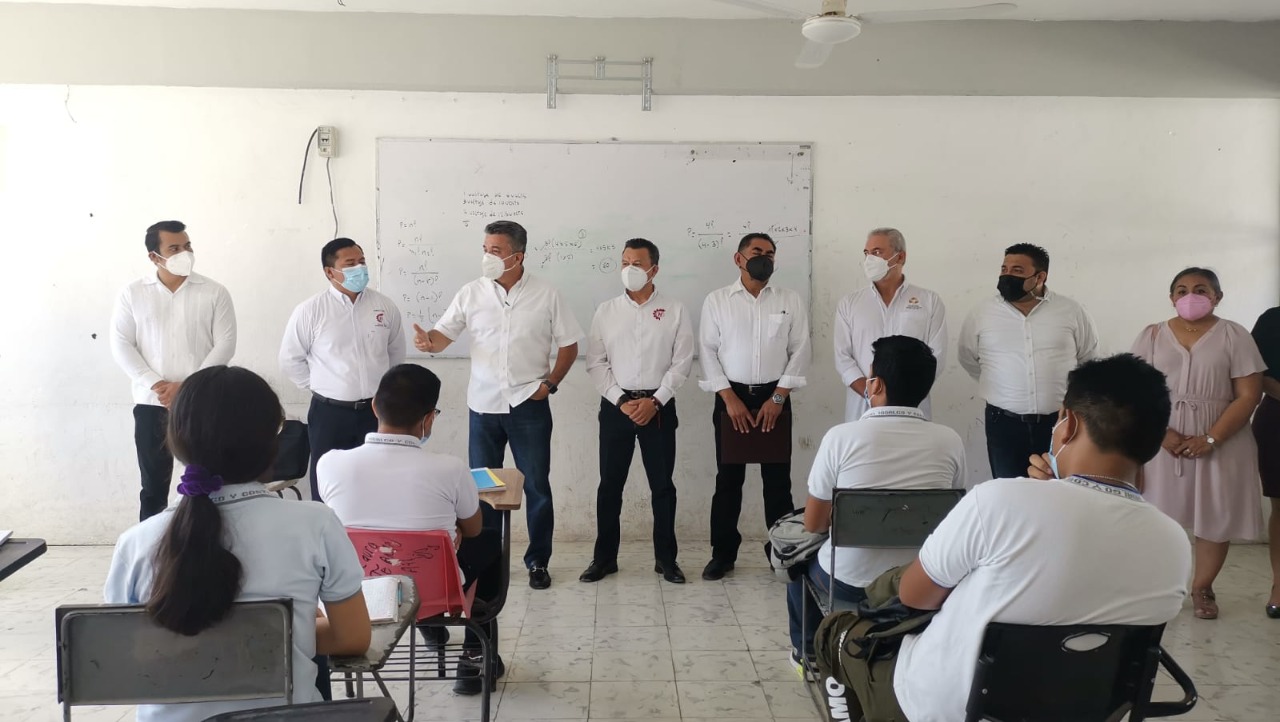 Durante una visita de supervisión en este plantel, acompañado del director, Rubén Reyes Morales, así como de Ricardo Ramírez Fuentes, comisionado responsable de la Dirección General de Educación Tecnológica Industrial (DGETI) en Campeche; y de la representante del Comité de Padres de Familia, Jesús Navidad Eligio Domínguez, el encargado de las políticas educativas constató las condiciones en las que se encuentra la institución académica.