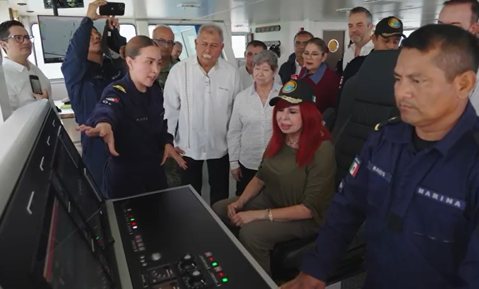 La Gobernadora Sansores San Román realizó una visita de supervisión a la draga “Meixueiro”, ubicada en el área de dragado del canal de acceso al puerto de la Isla del Carmen.