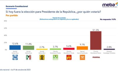 Tiene una ventaja del +34% en su intención de voto y de +51% en su expectativa de triunfo sobre Xóchitl Gálvez. Ciudad de México, octubre 2023....