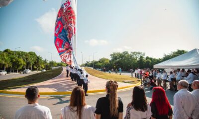 …Con el izamiento de la bandera monumental del Escudo de Armas inician las celebraciones del Mes de la Campechanía …Emotiva ceremonia al pie del asta bandera...