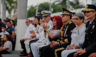 *Encabeza izamiento del Lábaro Patrio acompañada de autoridades civiles y militares *Participan en tradicional desfile 850 personas entre elementos policiacos, Ejército Mexicano, Marina y Guardia Nacional...