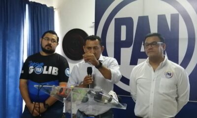 El Secretario General del Comité Directivo Estatal del Partido Acción Nacional, Jhosue Golib, acompañado del Diputado Local del Congreso del Estado, Pedro Cámara y José Inurreta...