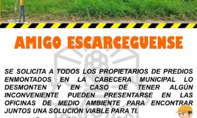 La Dirección de Obras Públicas, Desarrollo Urbano y Medio Ambiente Del Ayuntamiento de Escárcega inició la supervisión de lotes baldíos y la notificación a sus propietarios...