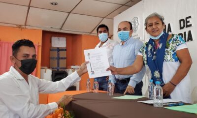El presidente municipal Silvestre Lemus Orozco acompañado de la Gobernadora Indígena de Campeche, Bertha Alicia Tun Chan, realizaron la entrega del nombramiento a José Eduardo Díaz...