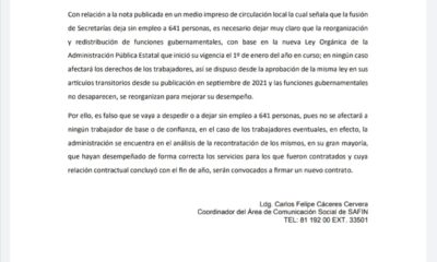 Por medio de un comunicado, el gobierno del Estado aclaró que la reorganización y redistribución de funciones gubernamentales, con base en la nueva Ley Orgánica de...