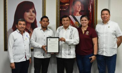 En representación de la gobernadora Layda Sansores, el secretario de Educación, Victor Manuel Sarmiento Maldonado, hizo entrega del nombramiento a Edwin Emmanuel Chan Pech como director...