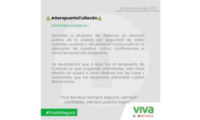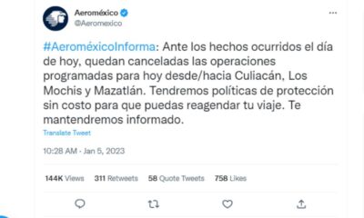 Aeroméxico anunció la cancelación de vuelos a las ciudades de Culiacán, Los Mochis y Mazatlán en Sinaloa, tras la situación de violencia que se vive en...