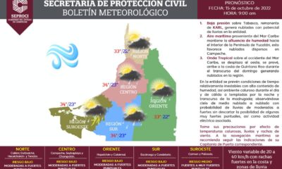 Este día, la nubosidad remanente de Karl ocasionará lluvias puntuales intensas (de 75 a 150 milímetros [mm]) en regiones de Chiapas, Oaxaca y el sur de...