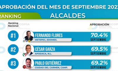 El alcalde del municipio del Carmen Pablo Gutiérrez Lazarus se ubica como el tercer alcalde con mayor aprobación según encuesta publicada por Demoscopia Digital correspondiente al...