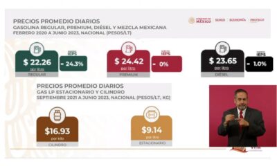 Ricardo Sheffield, titular de Profeco, informó que el precio promedio registrado en los combustibles fue de: $22.26 por litro en la gasolina regular, $24.42 por litro...