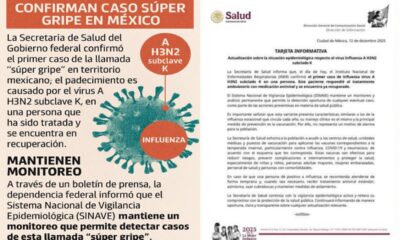 La Secretaría de Salud del Gobierno federal confirmó el primer caso de la llamada «súper gripe» en territorio mexicano; el padecimiento es causado por el virus...