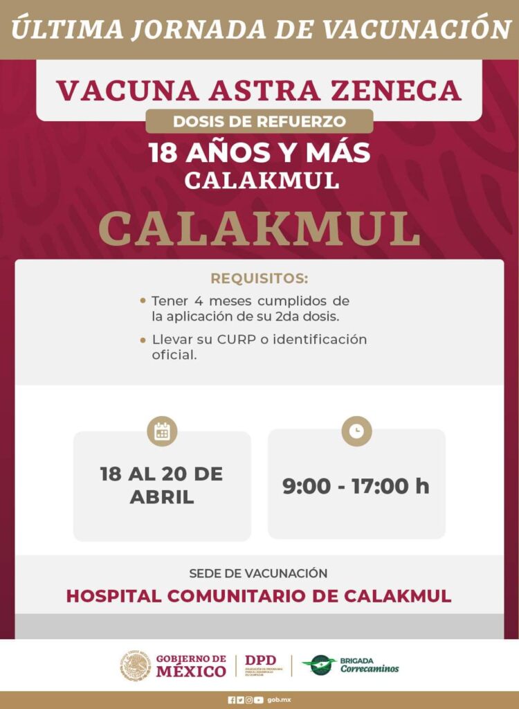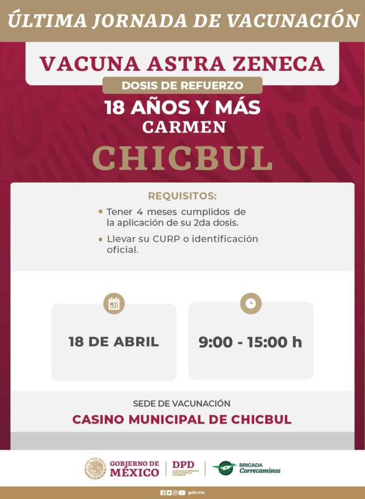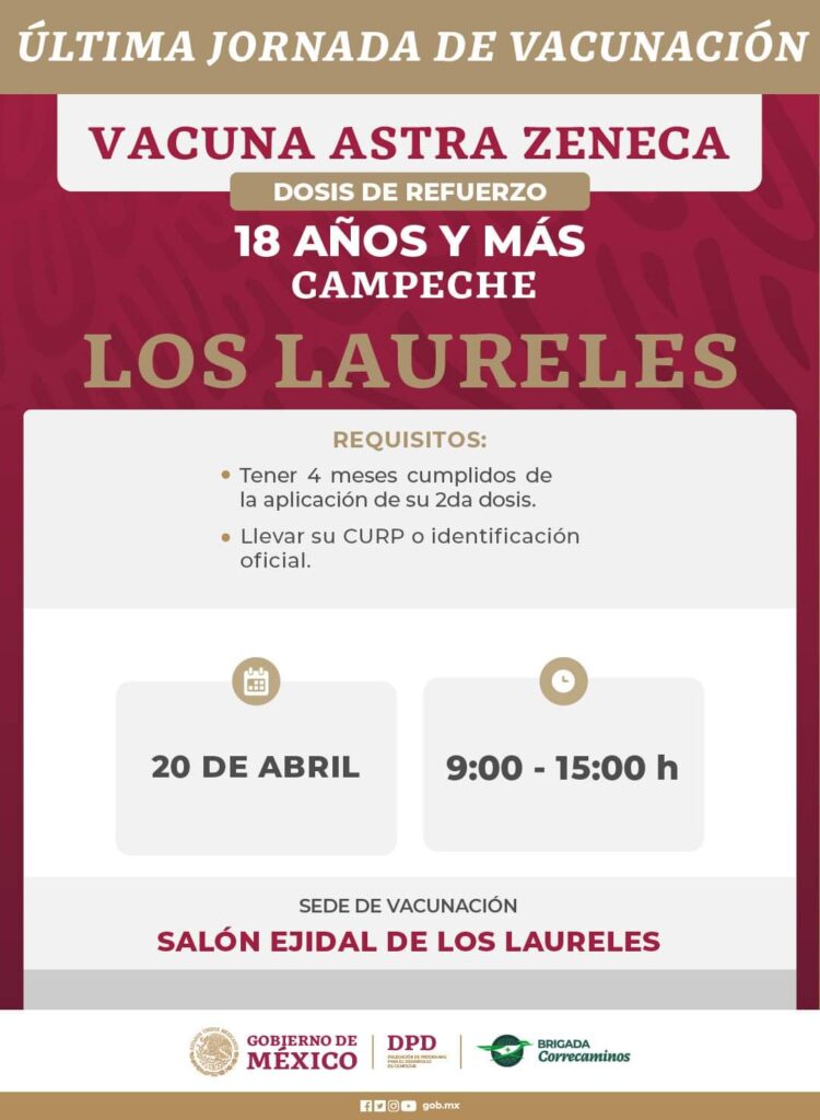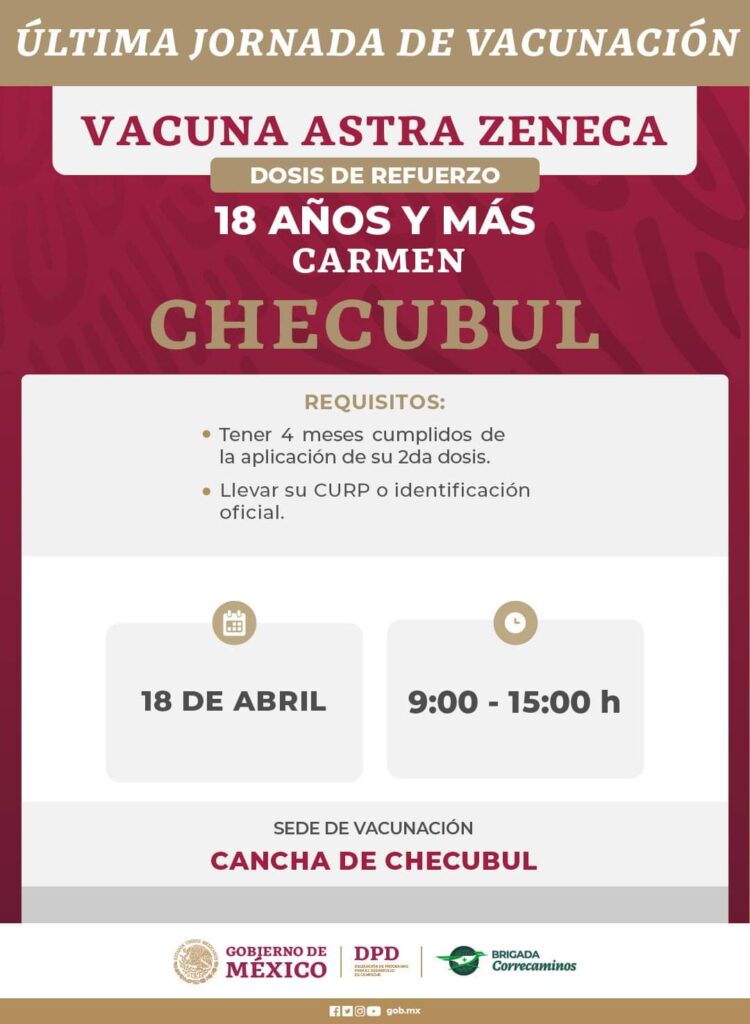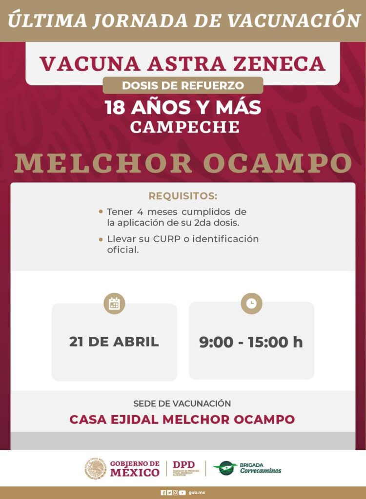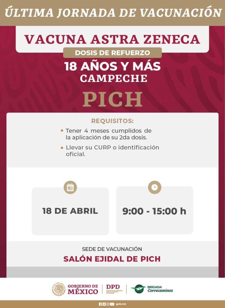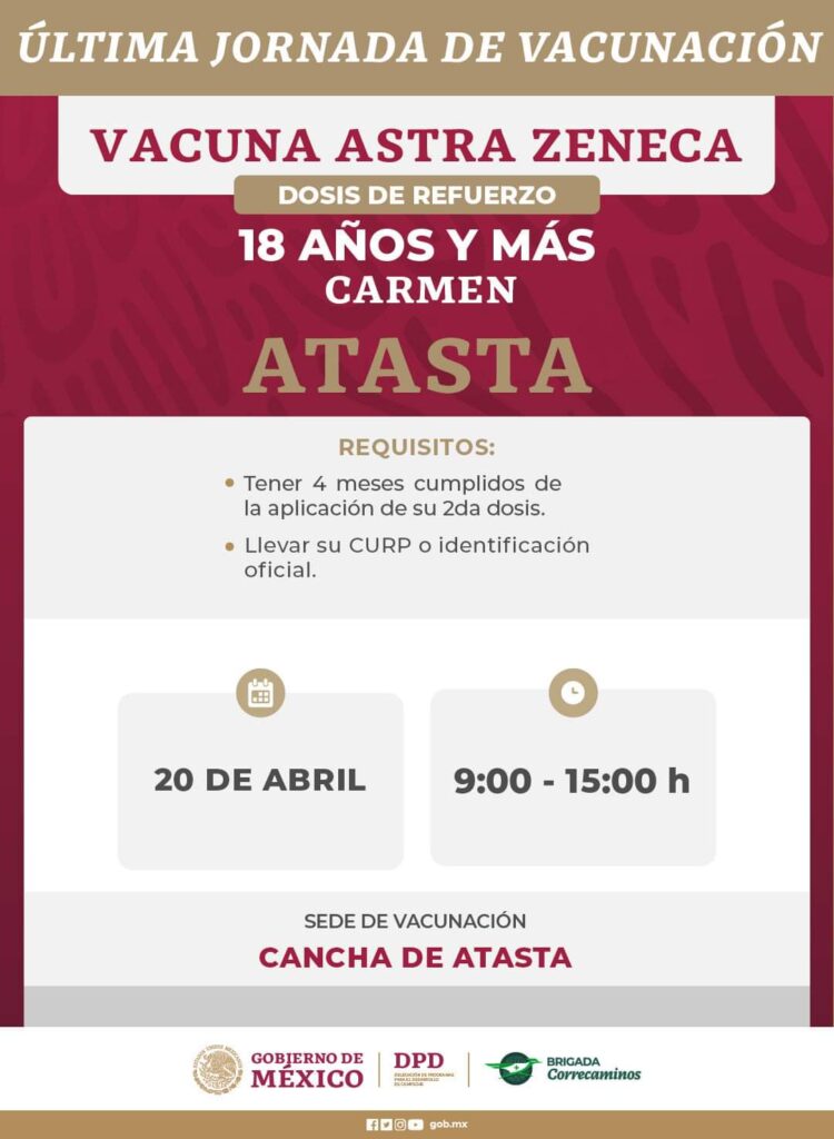 Anuncian última jornada de aplicación de dosis contra Covid-19 que se llevará a cabo del 18 al 22 de abril en localidades de los municipios:
