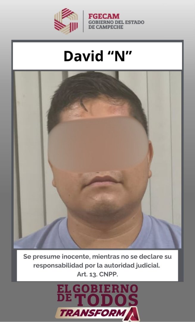La Fiscalía General del Estado de Campeche (FGECAM) informa que la Dirección “A” de la Vicefiscalía de Control Judicial obtuvo del Juez de Control del Primer Distrito Judicial la vinculación a proceso de David “N”, a quien se le impuso la medida cautelar de prisión preventiva justificada por todo el tiempo que dure el proceso, al ser considerado presunto responsable de los delitos de privación ilegal de la libertad en su modalidad de secuestro exprés, robo a casa habitación con violencia, robo de vehículo con violencia y robo con violencia.
