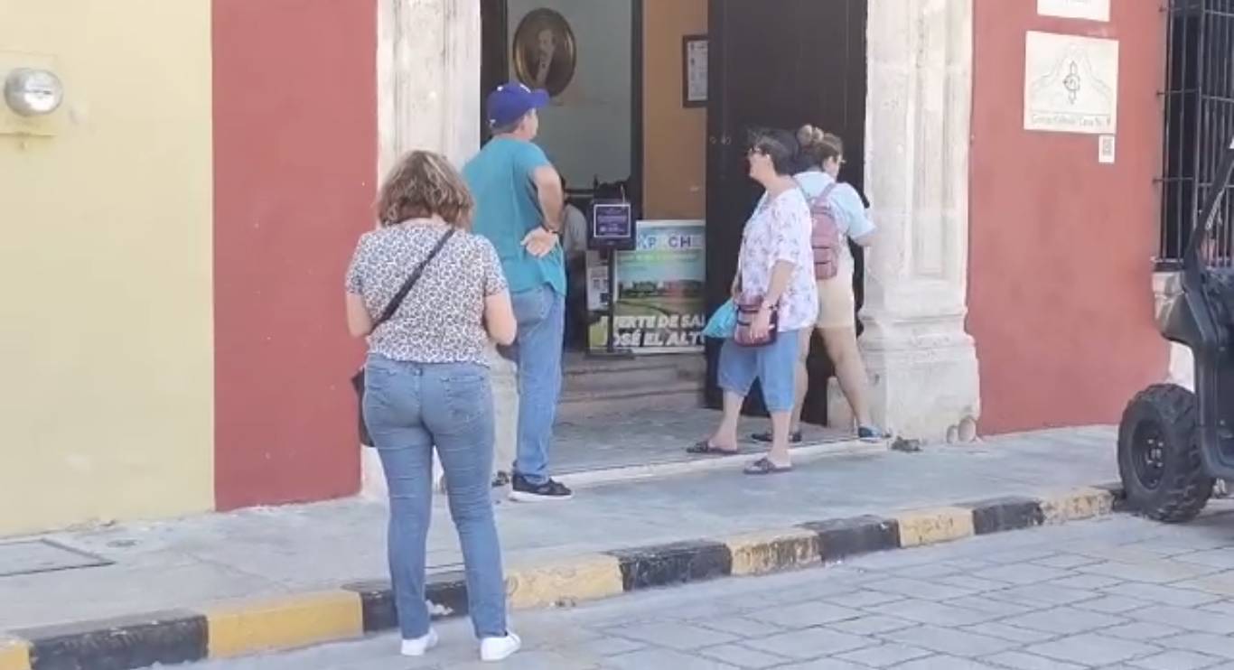 Los turistas aprovechan para tomarse las fotos del recuerdo, incluso algunos graban con cámaras profesionales su visita por Campeche.